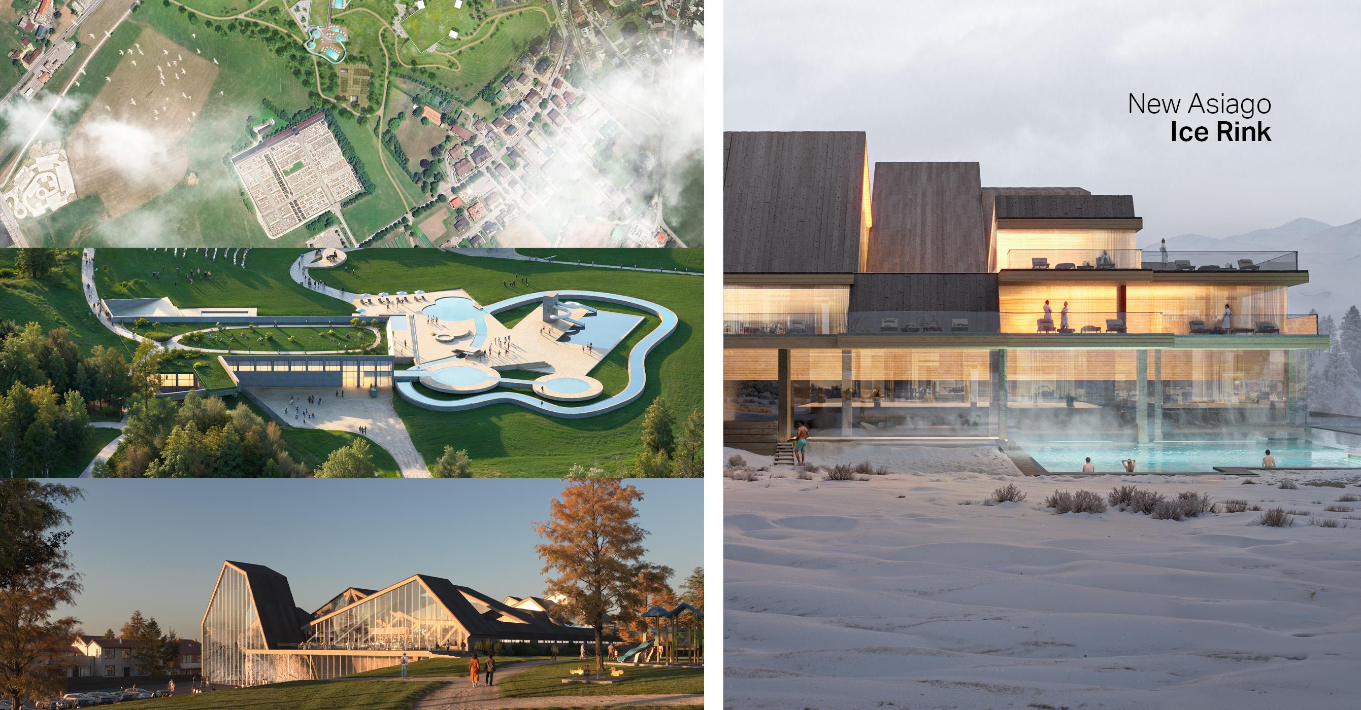 The New Asiago Ice Rink and Arena is a proposed multi-purpose sports and events venue sitting at the heart of the new “Asiago 365” urban masterplan in Parco Millepini, on the Asiago Plateau in northern Italy. The project envisions a year-round destination for sports, cultural, and community activities, designed to reinforce Asiago’s role as a leading center for winter and recreational tourism. Designed in line with principles of environmental and social sustainability, the project aims to support the regeneration of Parco Millepini and promote the long-term economic and social development of the Asiago Plateau.